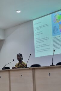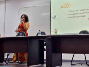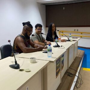 2024 – No dia 21 de novembro recebemos a visita do pesquisador Pérès Songbe, que proferiu a palestra Contribuições africanas na arquitetura brasileira: a presença do elemento arquitetônico Adinkra, dos povos Akan, na arquitetura brasileira. Pérès, arquiteto e urbanista, natural do Benin, nos trouxe informação e conhecimento sobre a simbologia adinkra e a influência na arquitetura brasileira, assim como conexões com a matemática.