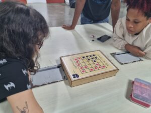 2023 – Ampliamos nosso repertório, passando a abordar elementos culturais africanos, oficinas foram elaboradas e aplicadas através da disciplina de extensão ACCS – Cultura e Jogos Africanos no Ensino da Matemática, conheça um pouco dessa experiência clicando aqui.