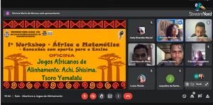 2024 – De 14 a 17 de abril, promovemos o 2º Workshop – África e Matemática, conexões com aporte para o ensino, evento direcionado a professores e estudantes de licenciatura em matemática, a programação contou com palestras, mesas de discussão, oficinas de jogos, torneio de jogos e exposição de materiais desenvolvidos por estudantes