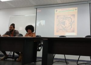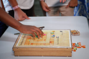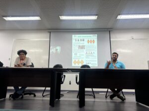 Felipe Carvalho e Leonardo Fagundes relataram a experiência de participar do coletivo, Leonardo prosseguiu explicando a oficina Seega com casas iluminadas, Felipe e Alice Carvalho expuseram a experiência de criar e aplicar a oficina Jogo da hiena com curiosidades do Sudão e Laís Baião e Moisés de Jesus fizeram o mesmo para a oficina Missão Expedição Arqueológica.