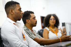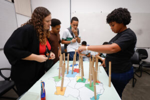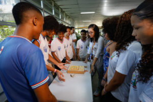 Na ocasião, a equipe do Itaú Social entrevistou a professora Simone Moraes, coordenadora do projeto, Álisson Conceição, Leonardo Fagundes e Monica Reis, integrantes da equipe, o professor Kleyber Mota da Cunha, diretor do Instituto de Matemática e Estatística da UFBA, as professoras Shirlei Sane Valois Estrela do Colégio Estadual de Plataforma e Susana Quirino da Silva do Colégio Estadual Desembargador Pedro Ribeiro, as estudantes Amanda Mota do Amparo, do Colégio Estadual de Vila Canária e Maria Vitória Tavares dos Santos, do Colégio Estadual Desembargador Pedro Ribeiro e a senhora Gabriela Santana, mãe de aluna do Colégio Estadual de Vila Canária.