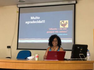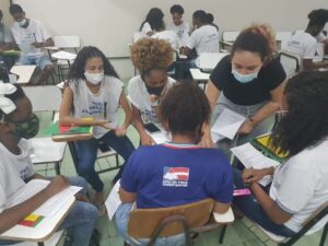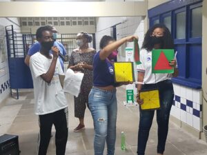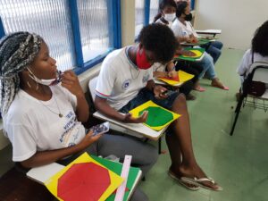 Oficina Jogos Africanos de Alinhamento e Mulheres Negras na Ciência noColégio Estadual Polivalente de Amaralina, no bairro Nordeste de Amaralina.